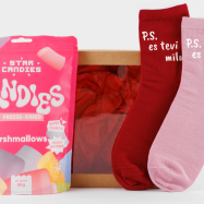 Šis dāvanu komplekts ir lieliska dāvana Jūsu mīļotajam cilvēkam Valentīndienā. Dāvanu komplekts sastāv no: STAR CANDIES liofilizēti zefīri "Marshmallows", 50g - 1 gab. Sieviešu zeķes "P.S. E...